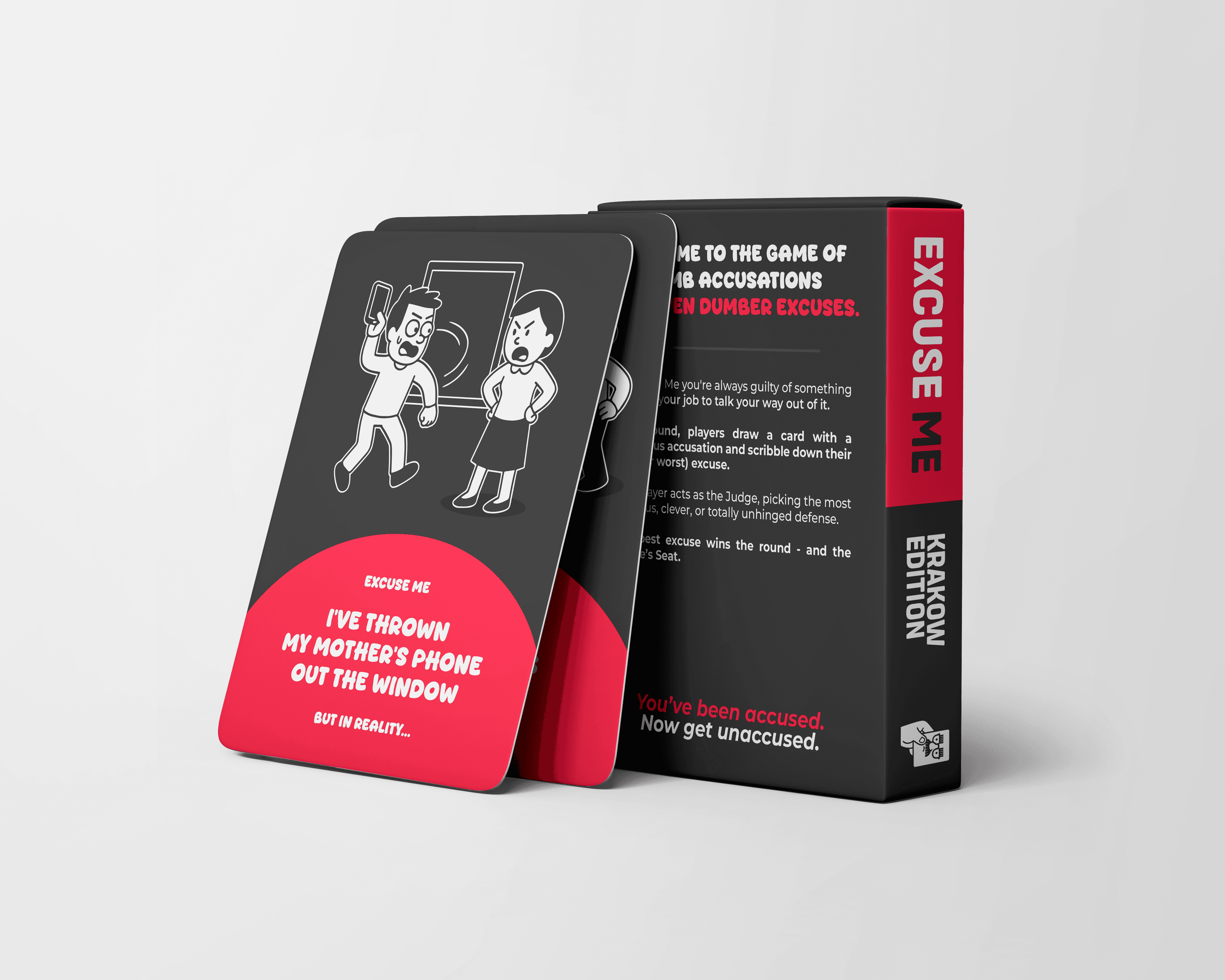 For the card game Excuse Me, I developed the complete visual identity including logo design, packaging, illustrations and overall creative direction. The goal was to create a game that feels accessible and engaging for both teenagers and young adults achieved through a simple, modern, and playful design language. The clean visuals, bold typography and character-based illustrations ensure clarity and approachability, while maintaining a contemporary aesthetic that appeals to a wide audience.